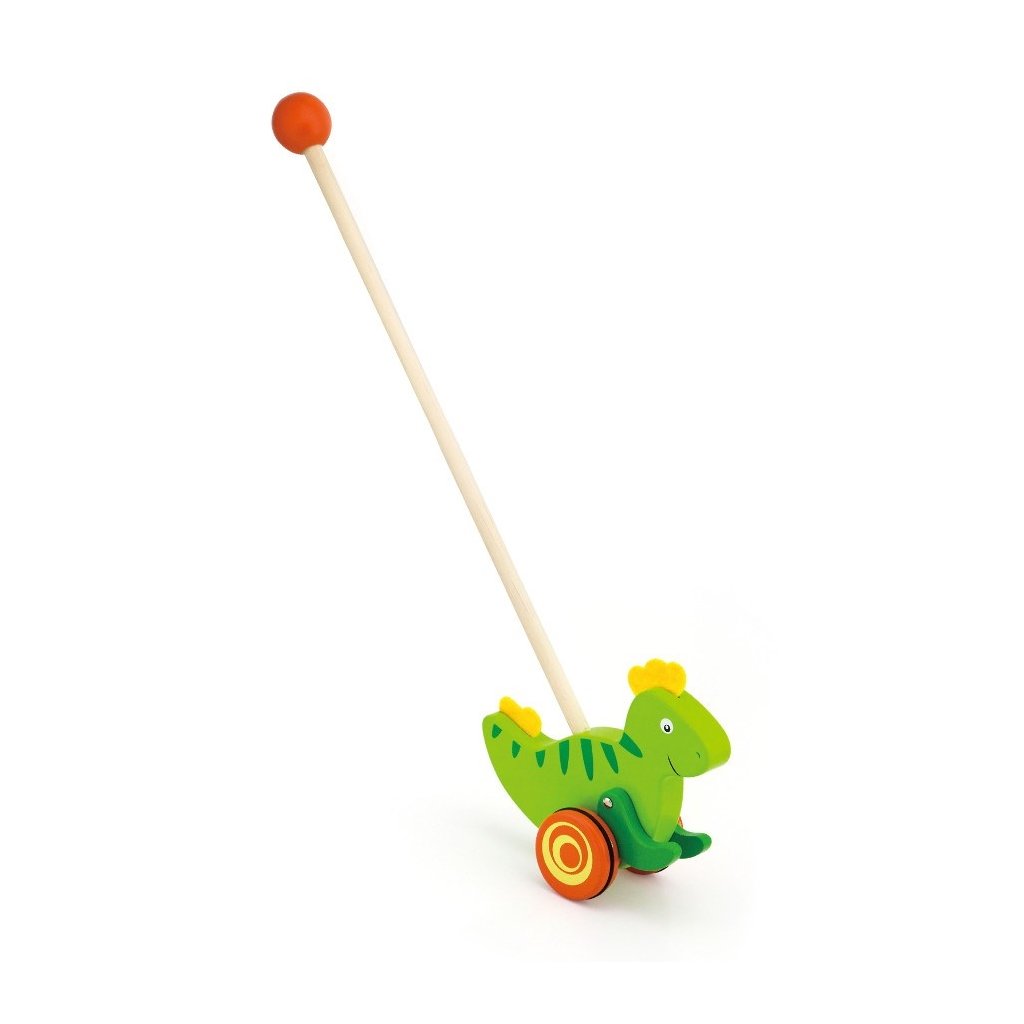 Krásna drevená hračka na tyči Viga Dinosaurus je skvelou alternatívou ťahacích hračiek pre deti. Perfektná edukačná hračka. Ideálna na spoločné prechádzky a hranie doma. Gumové prvky ...