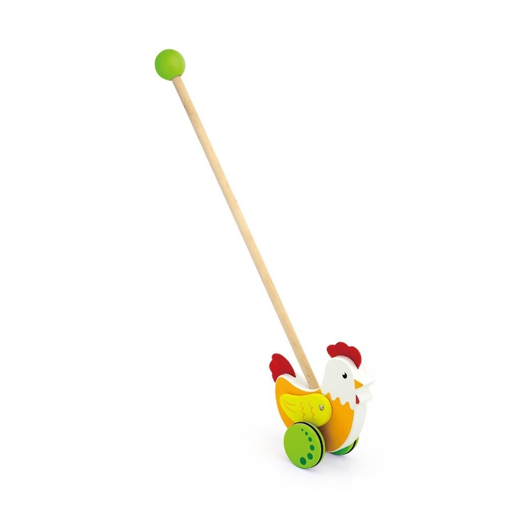 Krásna drevená hračka na tyči Viga sliepočka je skvelou alternatívou ťahacích hračiek pre deti. Perfektná edukačná hračka. Ideálna na spoločné prechádzky a hranie doma. Gumové prvky ...