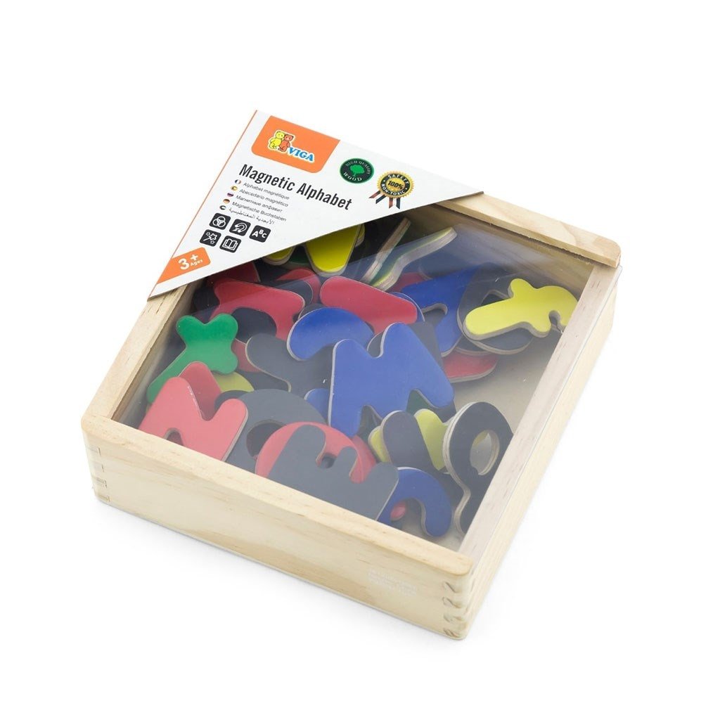 Magnetické písmenká sú zabalené v estetickej drevenej škatuľke s priehľadným akrylovým okienkom na jednoduché skladovanie a sú ideálne ako darček.