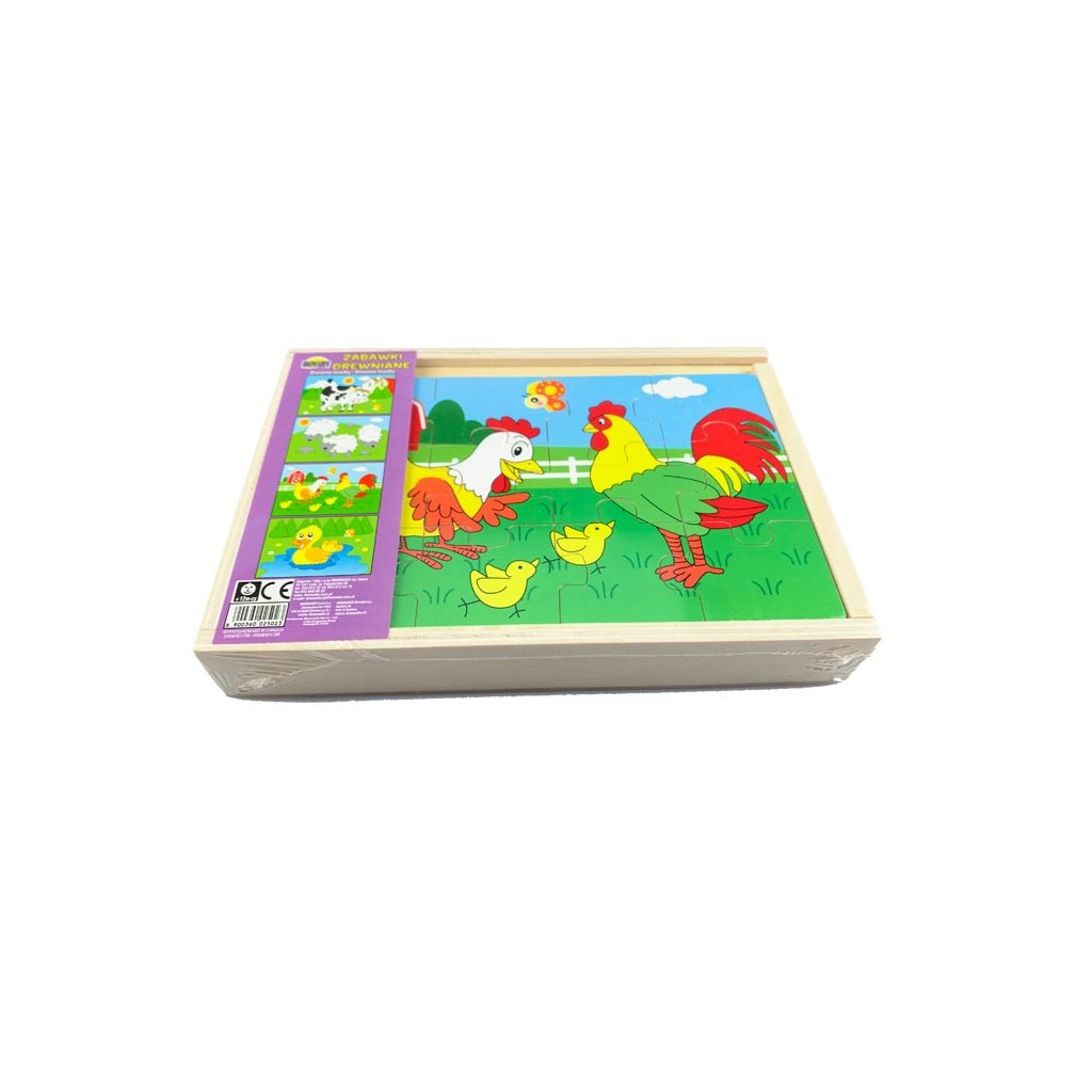 Drevené hračky pre deti. Drevené puzzle pomáha rozvíjať manuálne zručnosti a spoznávať svet. Usmievajúce sa tváre postáv na hračke a ich farebné oblečenie urobí radosť každému dieťaťu