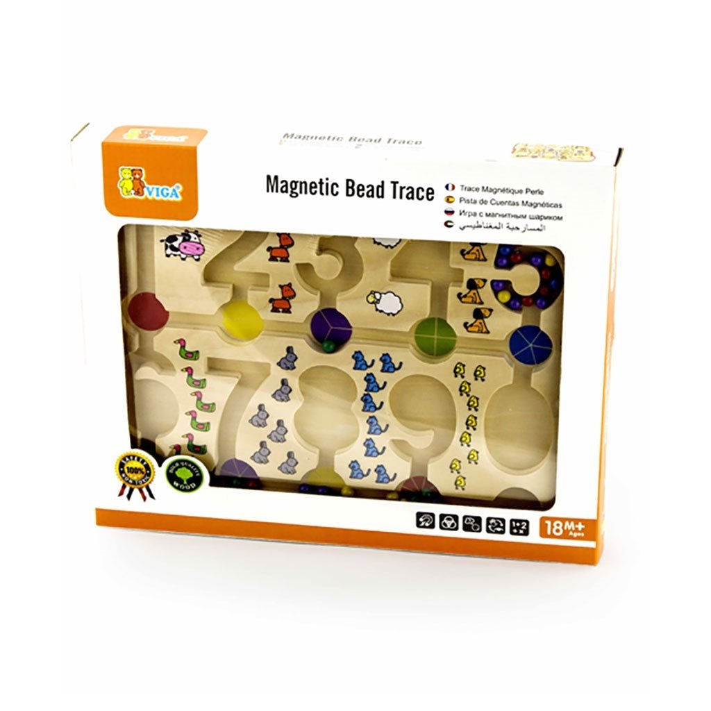 Učenie čísel nemusí byť nudné! Magnetické bludisko je určené pre deti od 18 mesiacov. Hračka má na svojej doske bludisko s malými farebnými guľôčkami, ktoré veďte k príslušným číslam. Od 1 cez 2, 3, 4, 5, 6, 7, 8, 9 až po 0. Na jednej strane dosky je magnetická palička, ktorou batoľa ťahá guľôčky na správne miesta. Na uľahčenie priraďovania počtu guľôčok sú pri každom políčku zvieratká a koliesko - s odstupňovaním zodpovedajúcim číslu. Okrem toho postavičky vyobrazených zvierat povzbudzujú dieťa k hre a skúmaniu okolitého sveta.