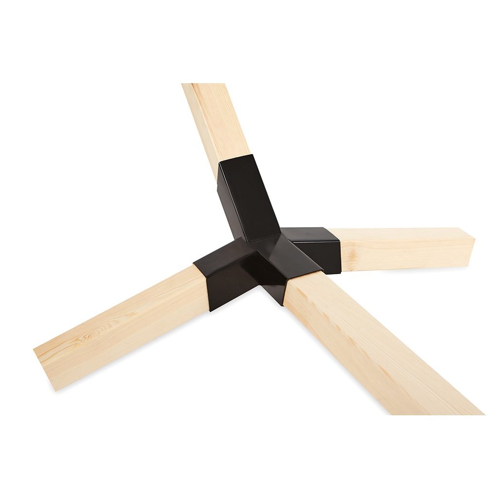 - Nohy vyrobené z oceľových profilov 100×100 mm, práškovo lakované na lesklú čiernu farbu – odolné voči korózii a zároveň elegantné. Drevené hranoly 95×95 mm zabezpečujú dlhú životnosť.