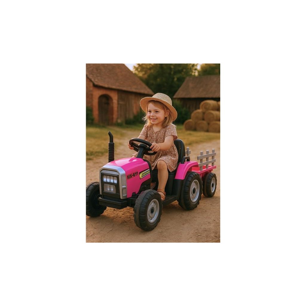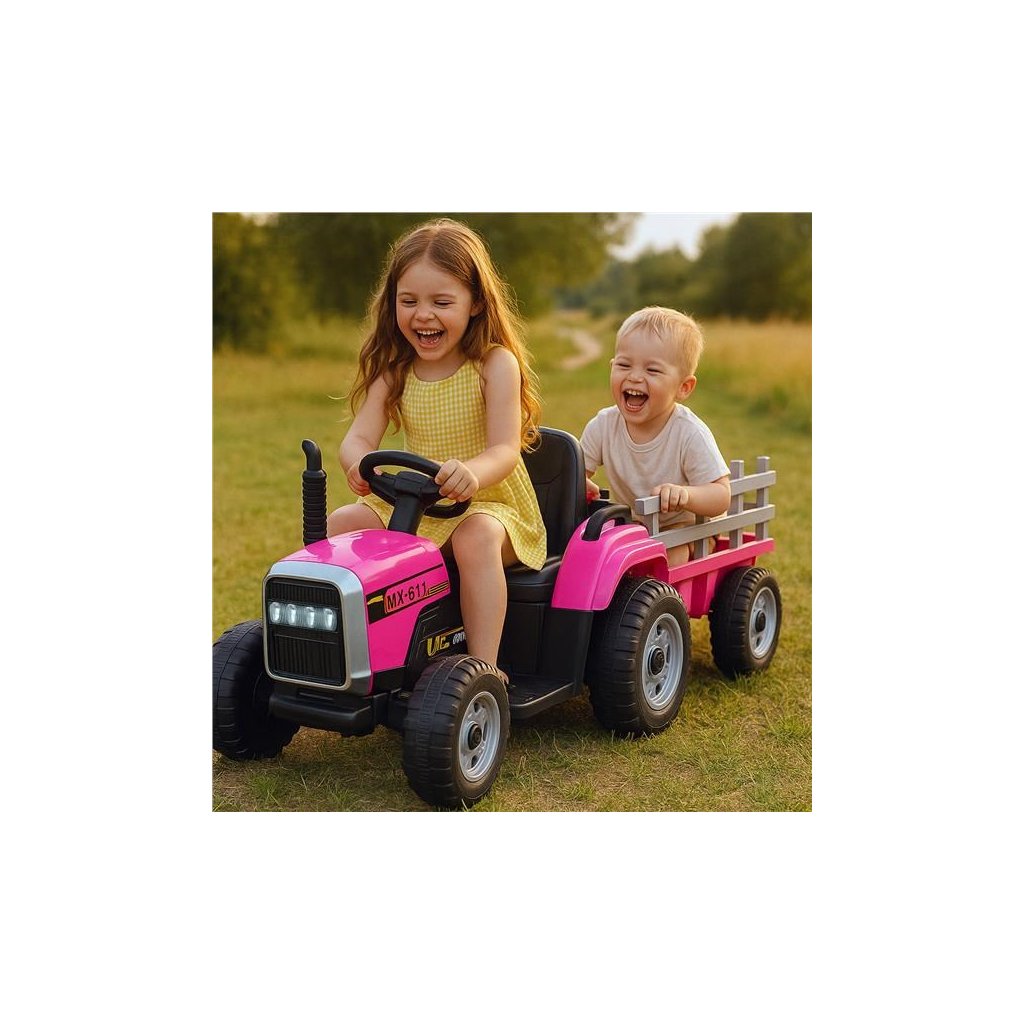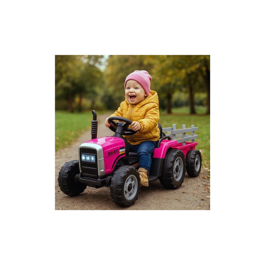 Detský elektrický traktor Baby Mix s výkonnými motormi 2x45 W prichádza v novom inovatívnom dizajne. Traktor má vlečku, pomocou ktorej môže dieťa prepravovať svoje hračky a poklady.