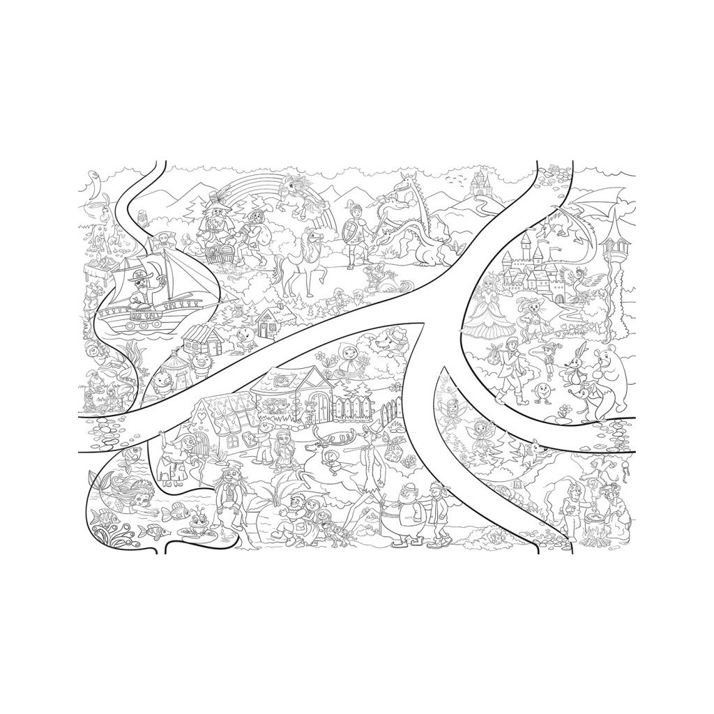 Fakt velká omalovánka Rozprávky, omaľovánka má rozmer 64 x 90 cm. Papier má vysokú gramáž 200 g, preto môžete zvoliť na omaľovanie pastelky, voskovky alebo aj vodové farby. Pri zakúpení všetkých 6 typov omaľovánky, ich možno spojiť do jedného veľkého diela prepojeného cestou. Rozmer (cm)