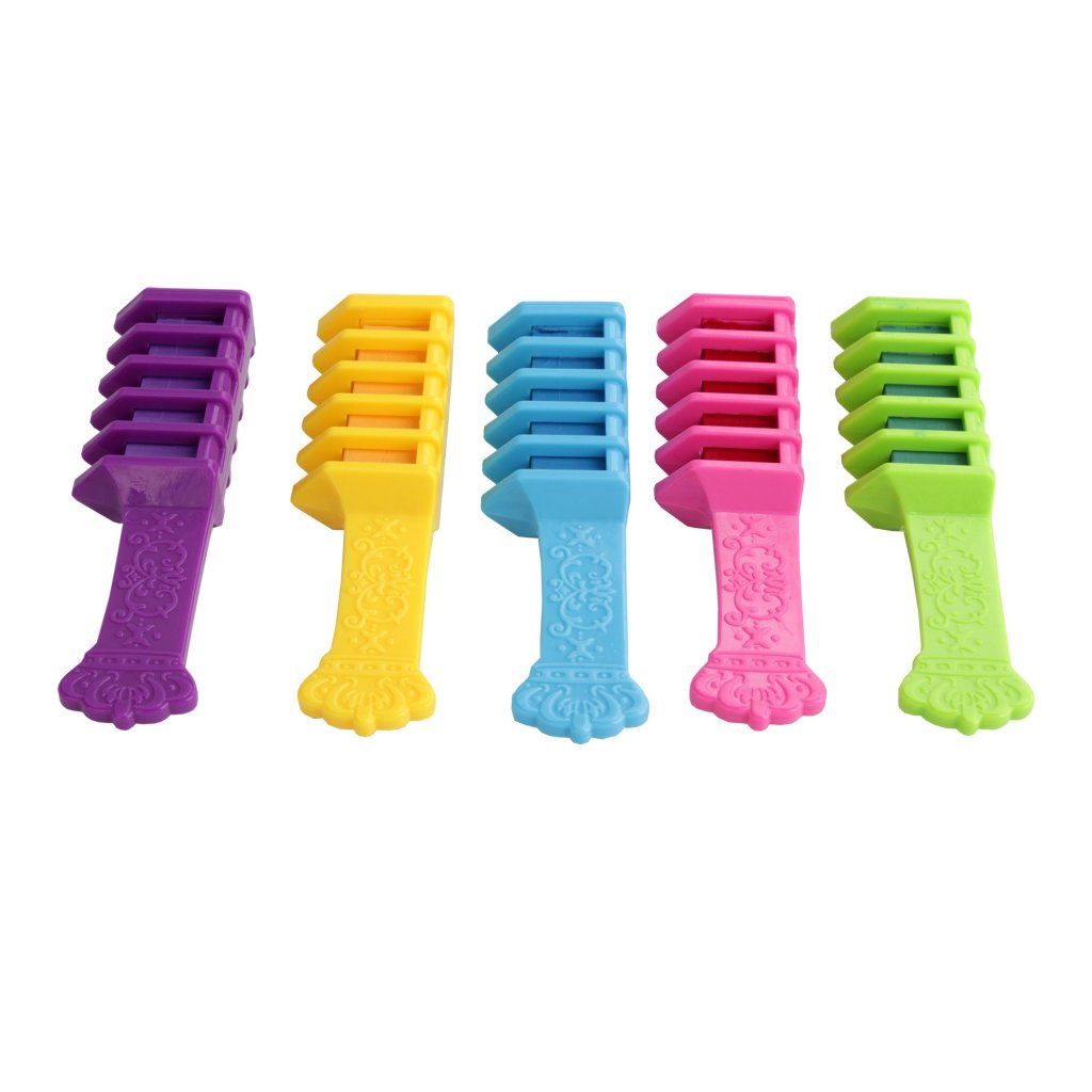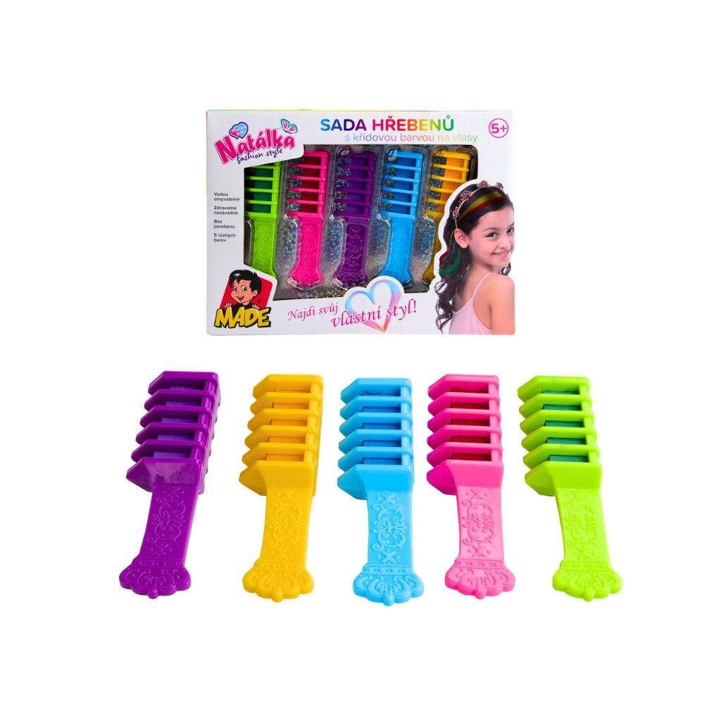 Hrebene s kriedovou farbou na vlasy sú ideálnou voľbou pre malé parádnice. Zmena farby vlasov? Prečo nie, s týmto balením je to možné. Stačí si vybrať svoju obľúbenú farbu alebo použiť všetky naraz. Fantázii sa medze nekladú. Nájdi si svoj vlastný štýl. Farby sú zdravotne nezávadné, umývateľné a bez barabenov. Balenie obsahuje 5 hrebeňov s farbou. Rozmer (cm)