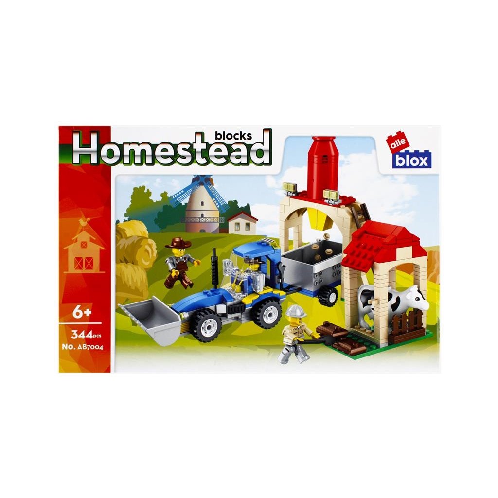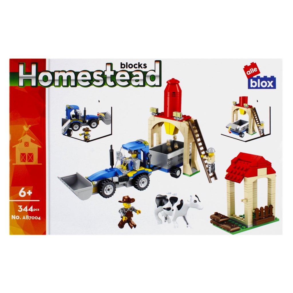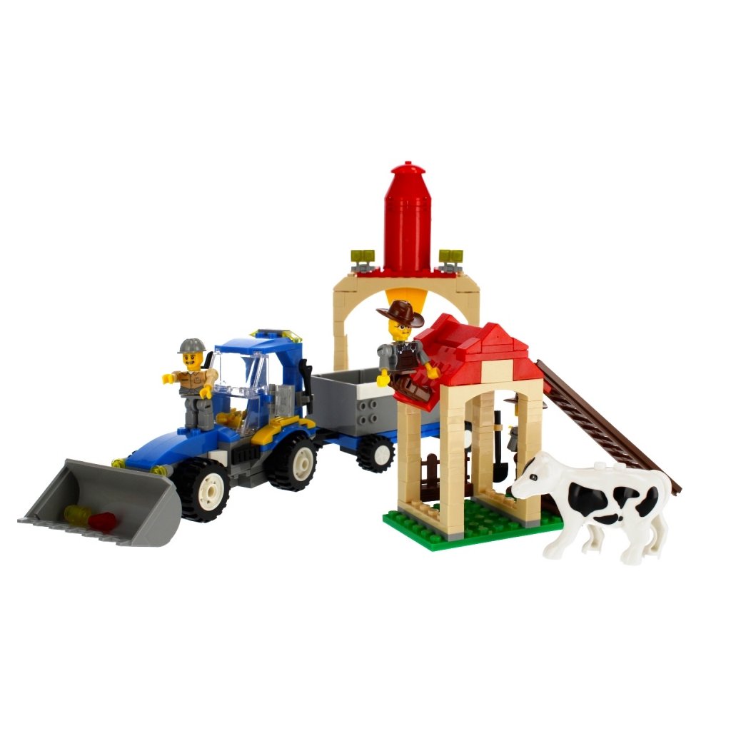 Farma s kravičkou a príslušenstvom, má rozmery tsilo-11x18x3cm, domček-13x10x5cm, ťahač s prívesom-28x9x7cm. Cena je za balenie, ktorý obsahuje 344 tehlových prvkov na zostavenie a montážny návod. Vhodné pre deti 6+. Rozmer (cm)