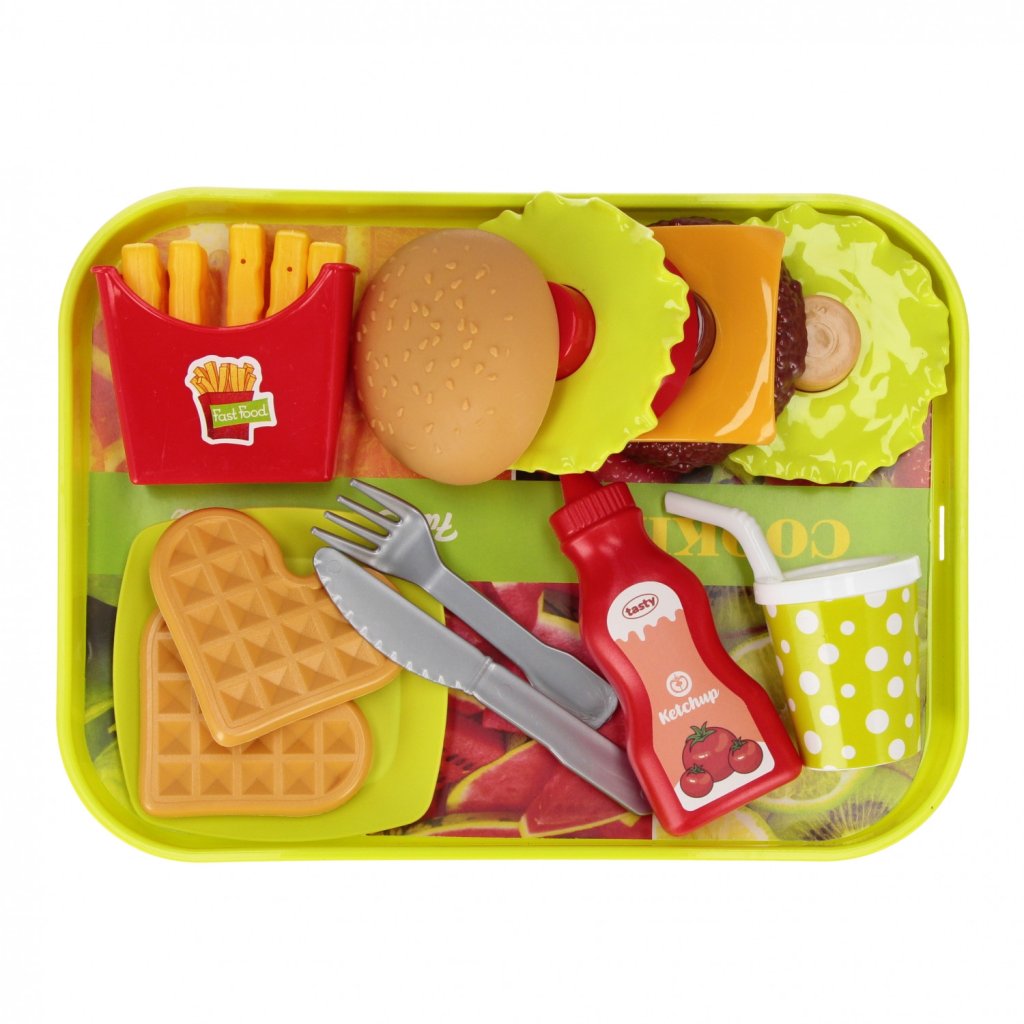 Fast food sada, bude perfektným doplnkom každej detskej kuchynky alebo obchodu. Sada obsahuje tanier, hranolky, hamburger, kečup, pohár na nápoj, vidlička a nôž. Rozmery balenia sú 27x20x7 ...