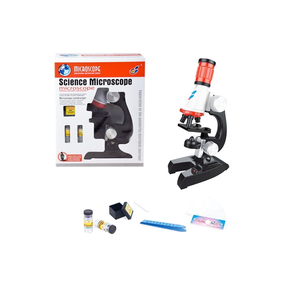 Mikroskop pre malého bádateľa. Rozlíšenie 100x - 1200x. Po vložení 2ks batérií typu AA, ktoré nie sú súčasťou balenia, zasvieti spodné svetlo. Možnosť otáčania okulárom. Balenie ...