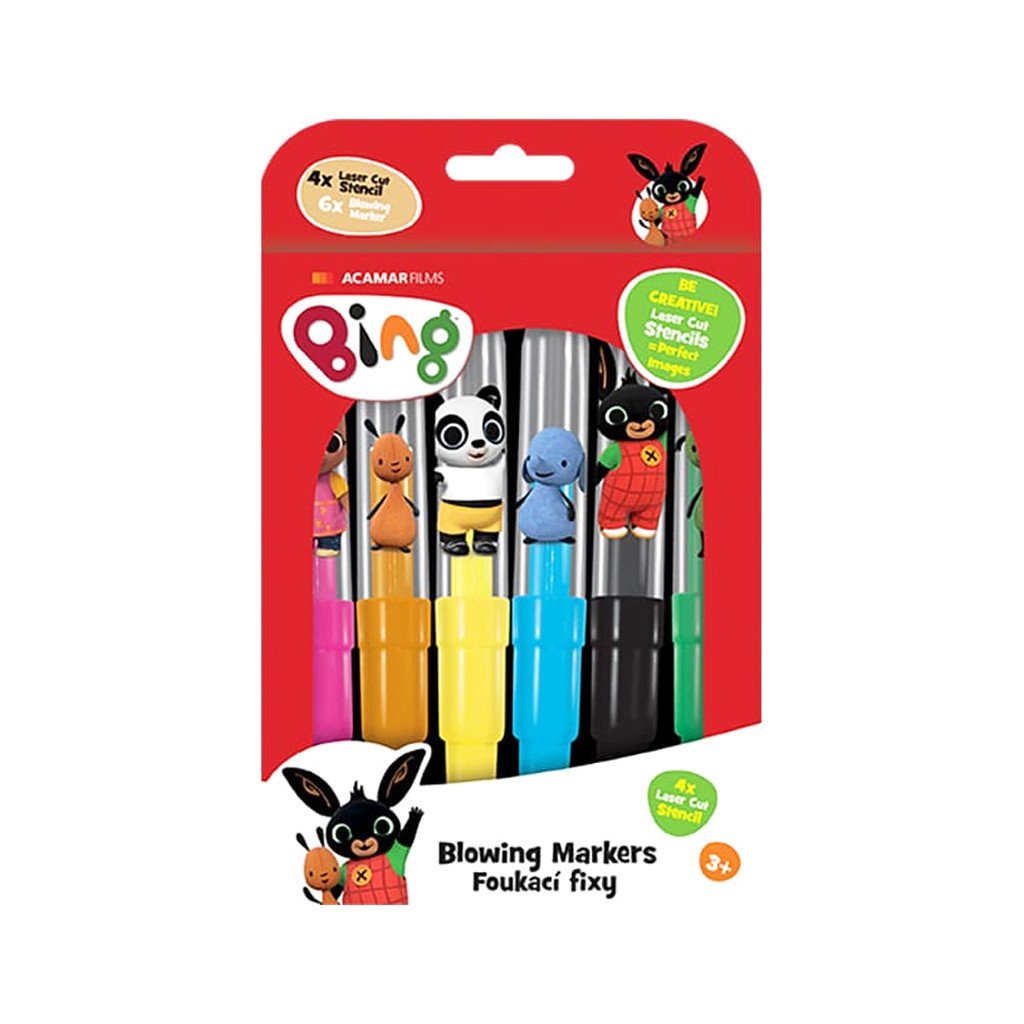 Fúkacie fixky Bing, balenie obsahuje 6 farebných fúkacích fixiek s potlačou a 4 farebné papierové šablónky v obľúbených rozprávkových motívoch. Má rozmery 188 X 120 X 22 mm. Cena je za...