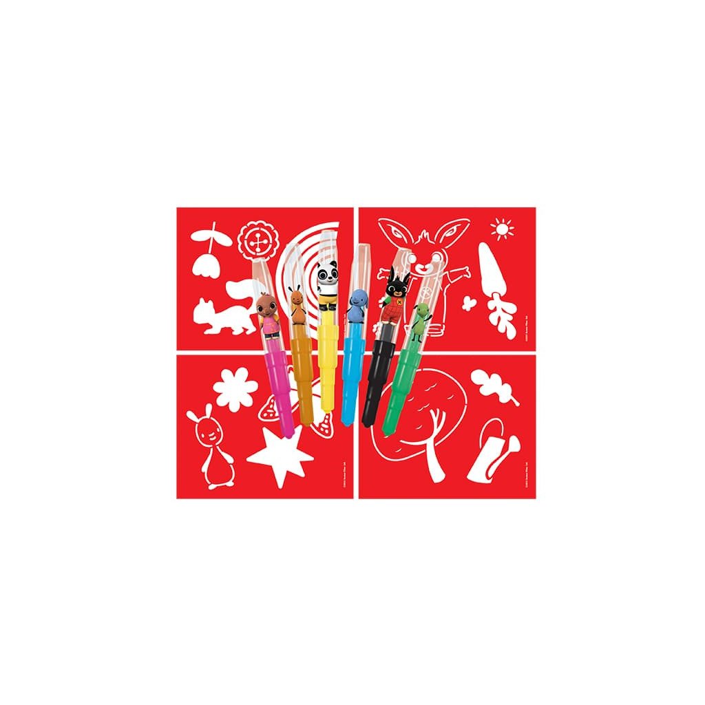Fúkacie fixky Bing, balenie obsahuje 6 farebných fúkacích fixiek s potlačou a 4 farebné papierové šablónky v obľúbených rozprávkových motívoch. Má rozmery 188 X 120 X 22 mm. Cena je za balenie. Vhodné pre deti 3+. Rozmer (cm)