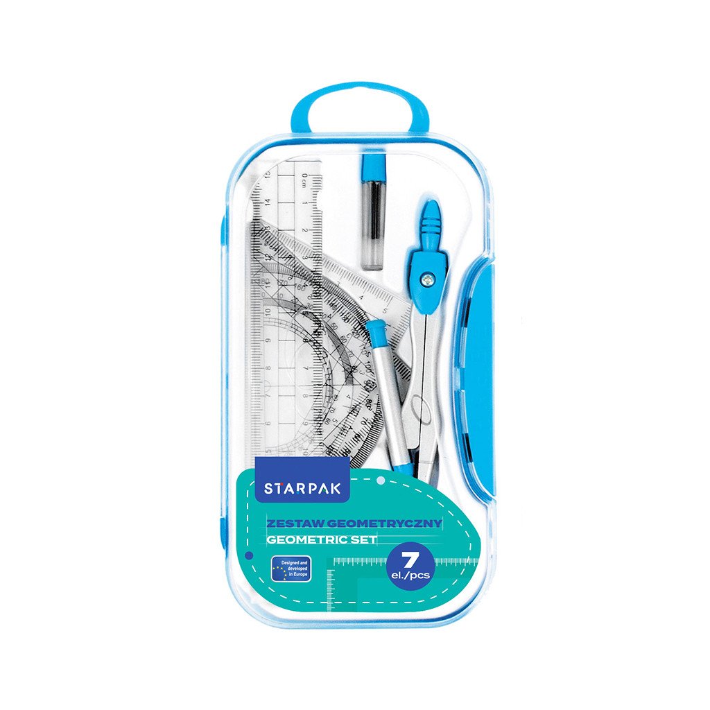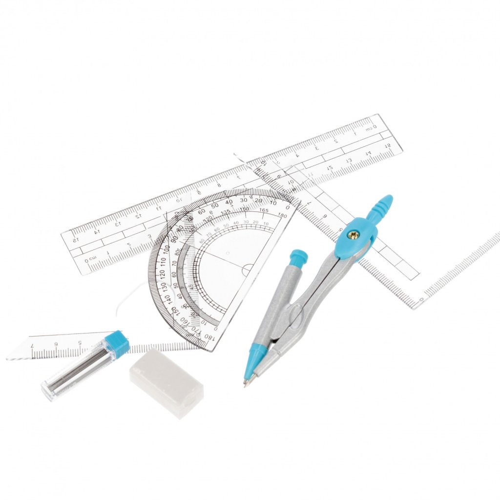 Geometrická sada , má rozmery 20x10 cm. Pozostáva z 1x kružidla, 1x nádoby s tuhými kružidlami, 1x gumy, 1x pravítka 15 cm, 2x sady uhlomerov a 1x uhlomeru. Cena je za sadu. Vhodné pre deti vo veku 3+ rokov. Rozmer (cm)
