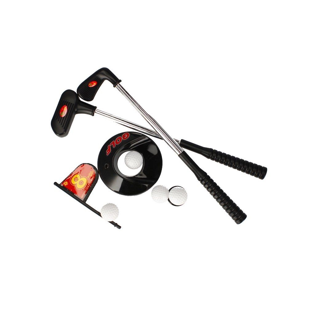 Obsah setu: 2x golfová palica, 3x loptička, vlajka, jamka.