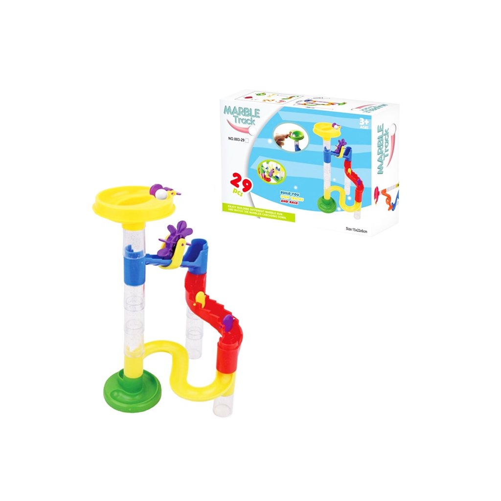 Postav si mini guličkový labyrint a sleduj ako guličky cez looping prechádzajú do cieľa. Plastová sada obsahuje 15ks guličiek a 14ks komponentov. Nevhodné pre deti do 3 rokov.