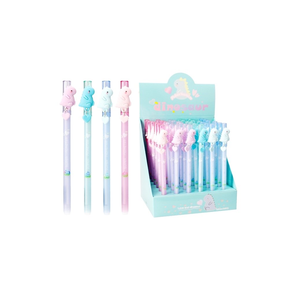 Text napísaný perom stačí dynamicky pretrieť priehľadnou špičkou umiestnenou na pere, atrament ako kúzlo zmizne. Perá majú zarážku s gumenou figúrkou dinosaura. Ideálne do školy, ...