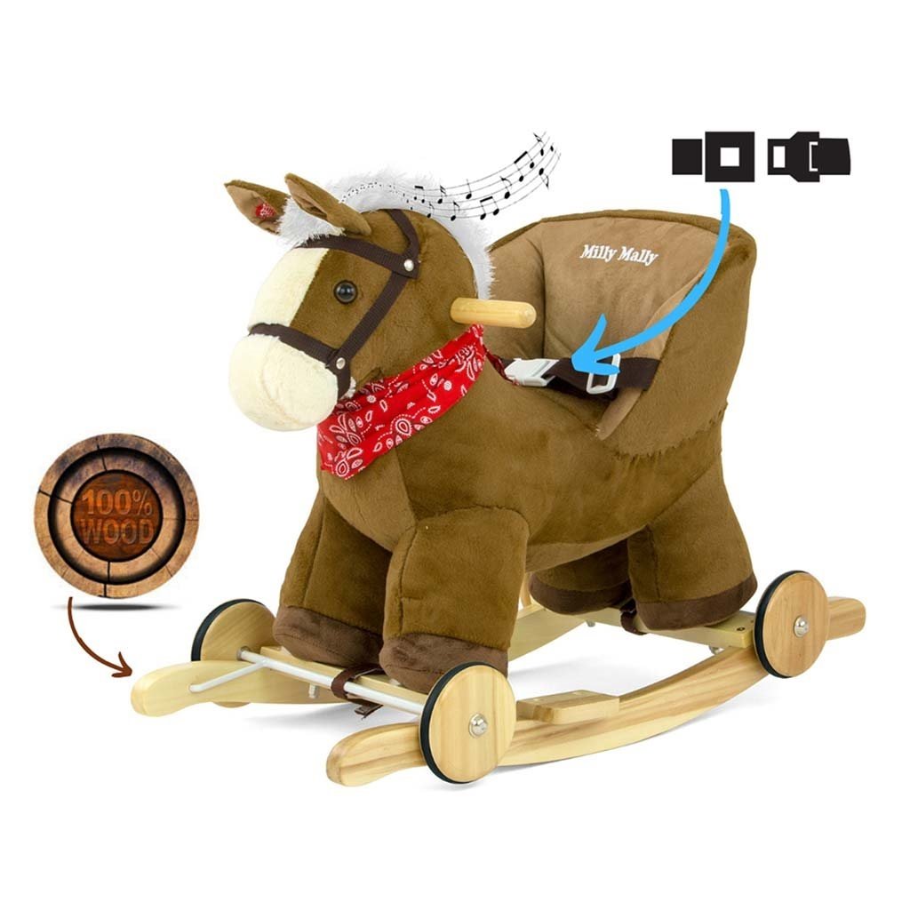 Hojdací koník s melódiou a kolieskami Milly Mally Polly hnedý