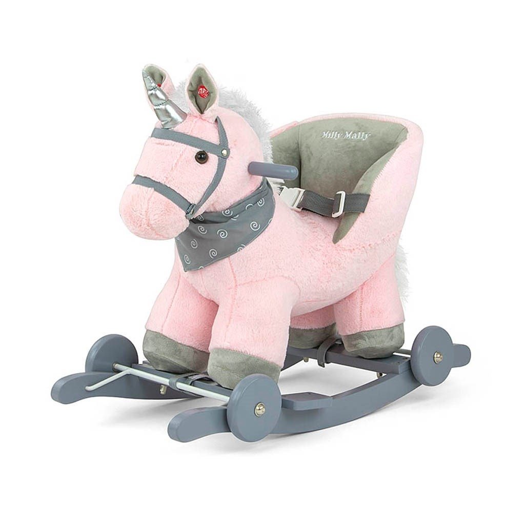 Hojdací koník s melódiou a kolieskami Milly Mally Polly rúžový
