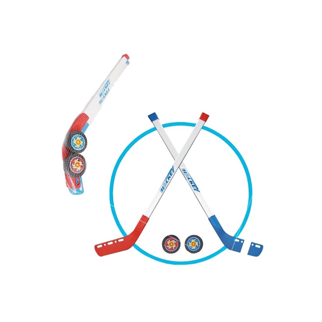 ICE hokejový set v sieťke. Balenie obsahuje dve hokejky a dva puky. Nevhodné pre deti do 3 rokov....