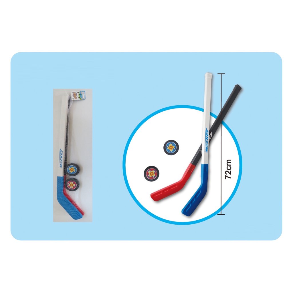 ICE hokejový set v sieťke. Balenie obsahuje dve hokejky a dva puky. Nevhodné pre deti do 3 rokov. Rozmer (cm)