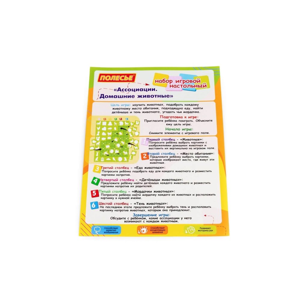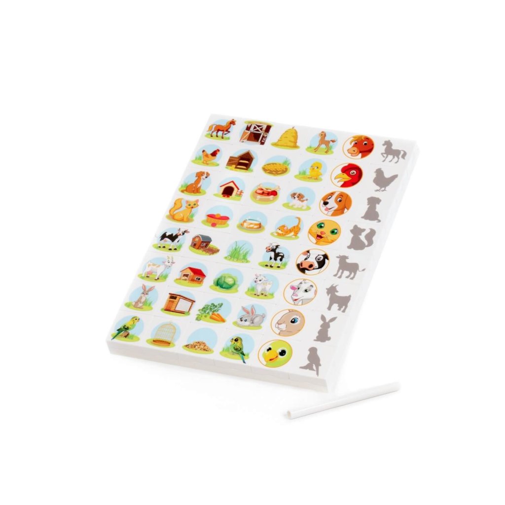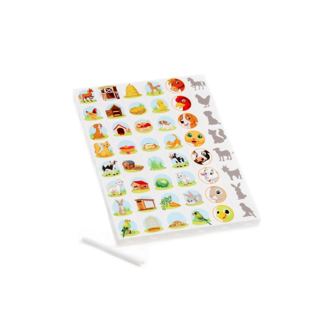 Hra Asociácie Domáce zvieratká - 48 dielikov je zábavná a vzdelávacia hra určená pre deti predškolského veku a základných škôl. Cieľom hry je priradiť ku každému zvieratku biotop, vhodnú potravu, nájsť mláďa a tieň zvieraťa a uhádnuť, komu patrí tvár, umiestnením vyberateľných dielikov do správneho stĺpca. Jasné a farebné obrázky robia proces ešte pútavejším a vzdelávacím. Hra Asociácie Domáce zvieratká podporuje logické myslenie, zlepšuje jemnú motoriku a trénuje sústredenie. Sada obsahuje kartičku s vopred pripraveným obrázkom a hernými možnosťami, ako aj deliacu priečku pre vyberateľné dieliky. Rozmer (cm)