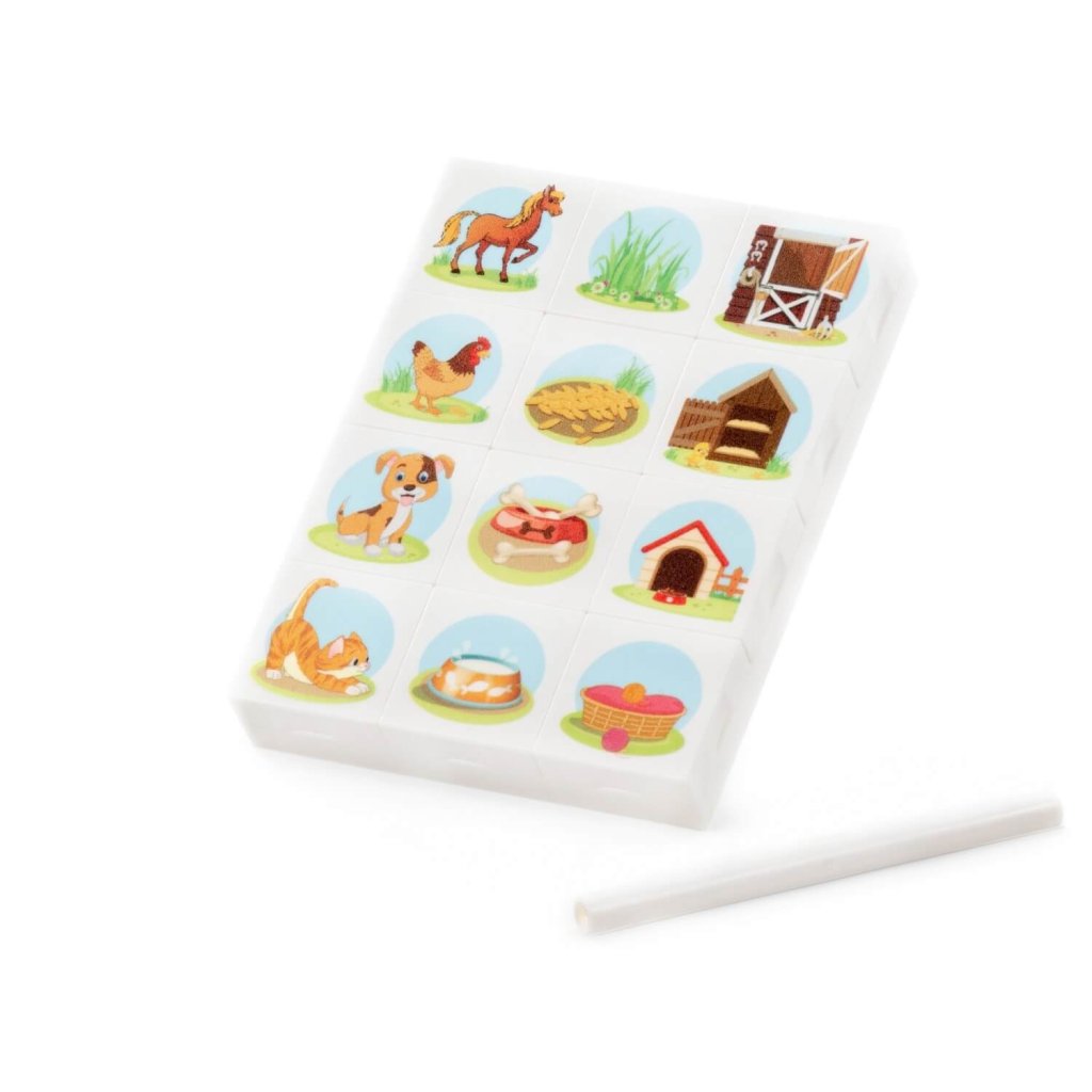 Hra Asociácie - Domáce zvieratká je zábavná a vzdelávacia hra určená pre deti predškolského veku a základných škôl. Cieľom hry je priradiť biotop a potravu každého zvieraťa umiestnením vyberateľných dielikov do správneho stĺpca. Jasné a farebné obrázky robia proces ešte pútavejším a vzdelávacím. Hra Asociácie - Domáce zvieratká podporuje logické myslenie, zlepšuje jemnú motoriku a trénuje sústredenie. Sada obsahuje vložku s vopred pripraveným obrázkom a hernými možnosťami, ako aj deliacu priečku pre vyberateľné dieliky. Rozmer (cm)