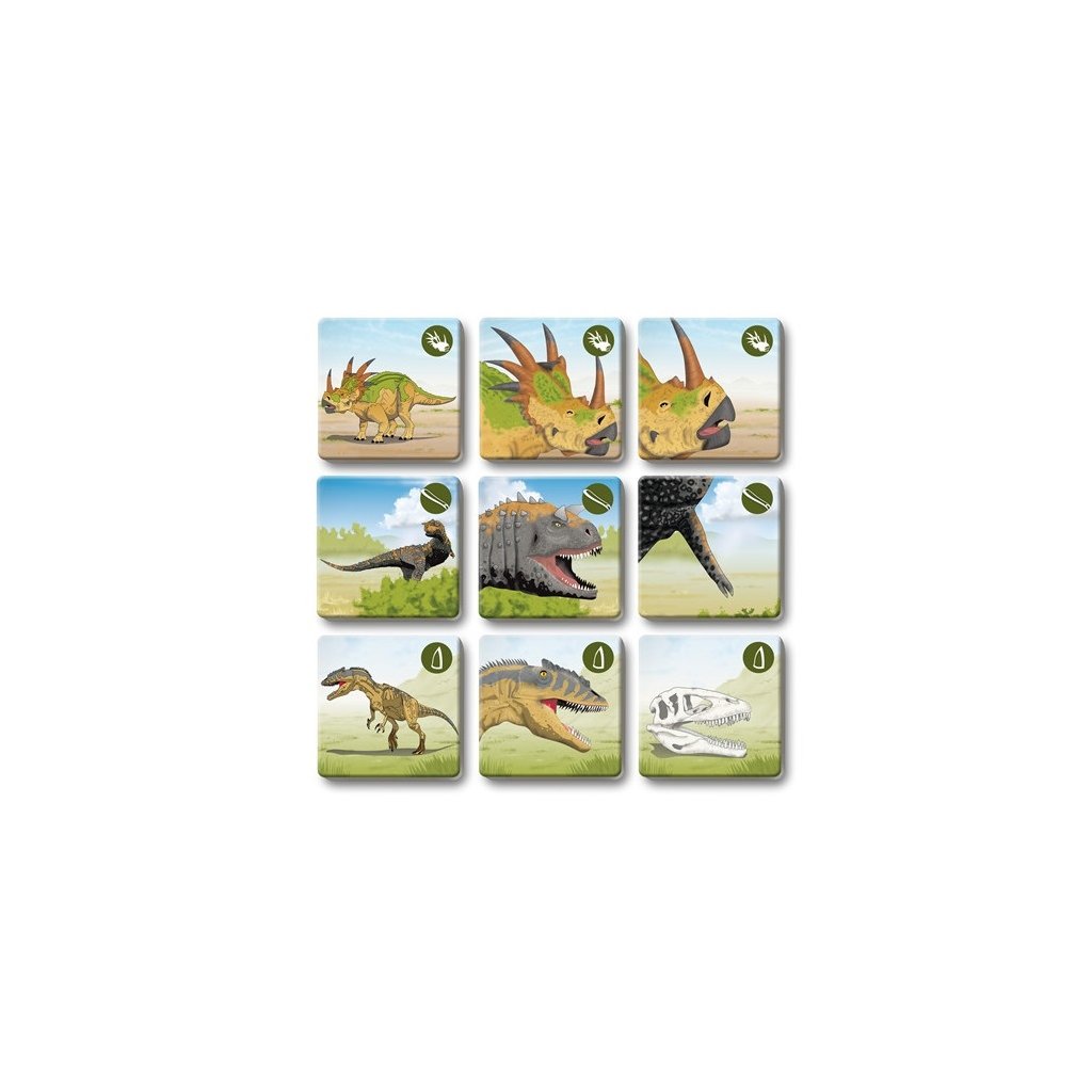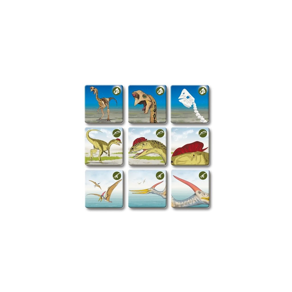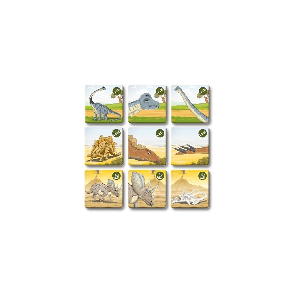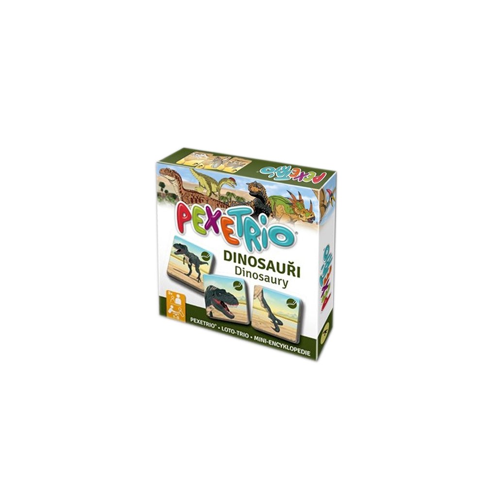Pexetrio DINOSAURY je didaktická a zábavná hra, v ktorej sa naučíte pomenovať rôznych dinosaurov a rozlišovať ich pomocou ich typických znakov.