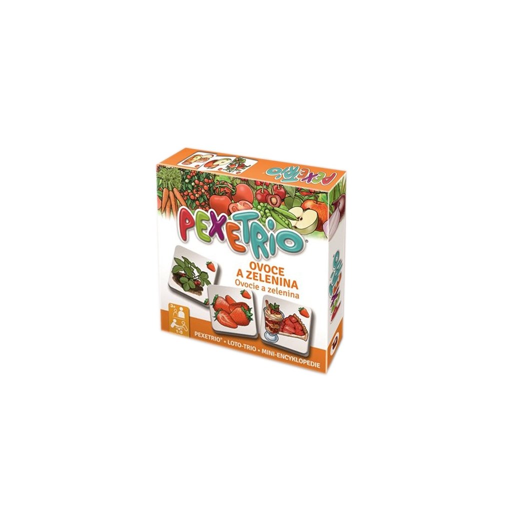 Pexetrio OVOCIE A ZELENINA je didaktická a zábavná hra, v ktorej sa naučíte poznávať rôzne druhy ovocia a zeleniny a zistíte, čo sa z nich vyrába.