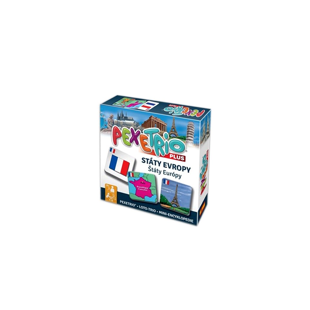 Pexetrio EURÓPA plus je didaktická a zábavná hra, v ktorej sa naučíte spoznať vlajky, mapky a stavebné pamiatky rovnakého štátu.