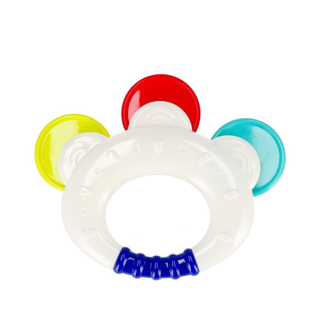 CHRASTÍTKO ideálne pre fázu prerezávania zúbkov, kedy sú ďasná opuchnuté. Vyrobené z kvalitného plastu prináša úľavu a upokojuje ďasná bábätka v tomto náročnom období. Tvar hrkálky bol navrhnutý tak, aby jeho uchopenie a držanie v malých ručičkách bolo jednoduché a praktické. Rôznorodá štruktúra a nerovný povrch hračky umocňujú hmatové vnemy a rozvíjajú manuálne zručnosti. Široká škála farieb stimuluje zrakové vnímanie. Hračka je určená od veku 3 m+. Rozmer (cm)