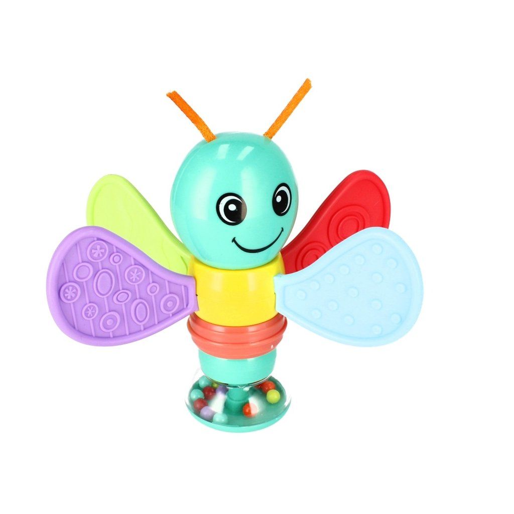 Hrkálka v dvoch farbách: zelená, červená s tlmenými farbami poskytuje mnoho radosti dieťaťu od narodenia. Trepanie hračky spôsobuje charakteristické zvuky, ktoré ich senzibilizujú, aby rozlíšili ich intenzitu. Včelie pohyblivé krídla a farebné gule batoľa určite zaujmú. Hračka rozvíja zrak, hmat, sluch a manuálne zručnosti dieťaťa. Hračka je určená pre deti vo veku 0m+. Cena za kus. Rozmer (cm)