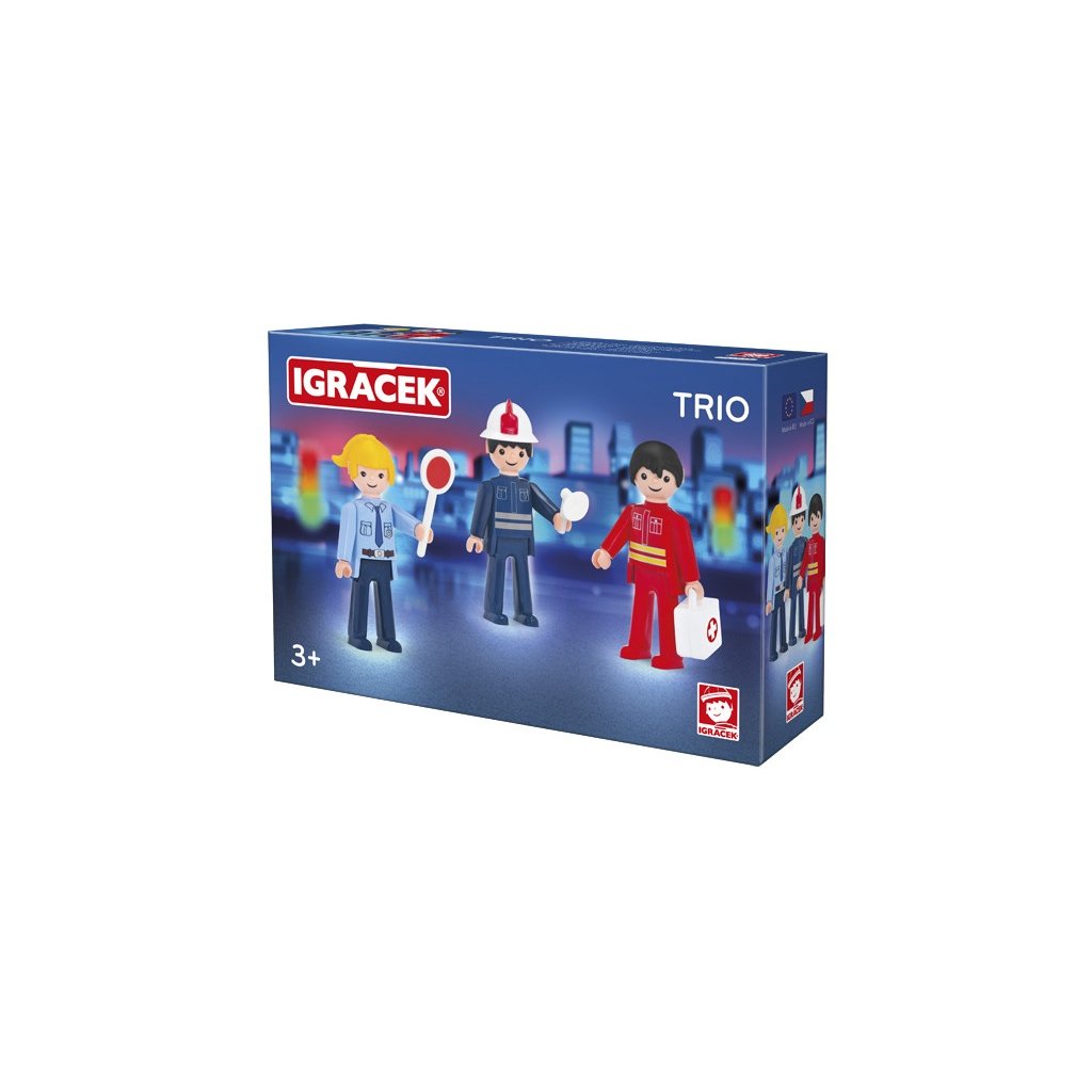 Záchranár, hasič a policajt. Statočná trojka, ktorá sa ponáhľa na pomoc, keď sa niekde stane havária. Napínavá akcia u teba doma! Legendárna postavička od roku 1976. Vyrobené v ČR....