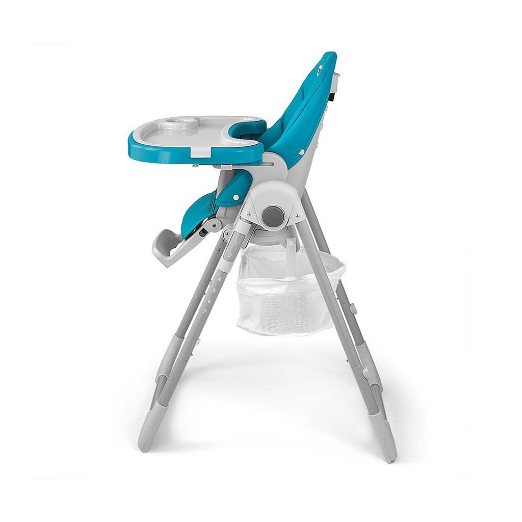 Čalúnenie stoličky je vyrobené z ekologickej kože a má navyše mäkkú vložku pre najmenších. Pre bezpečnosť dieťaťa je vybavená 5-timi bodovými nastaviteľnými pásmi a prídavnou zábranou proti pošmyknutiu. Na zadnej strane operadla je úchyt na zavesenie tácky. Operadlo aj podnožku je možné sklopiť do ľahu. Sedák je možné zdvihnúť alebo znížiť v 7 stupňoch a nohy majú zabudované gumové kolieska. Celú konštrukciu je možné ľahko a hladko zložiť.