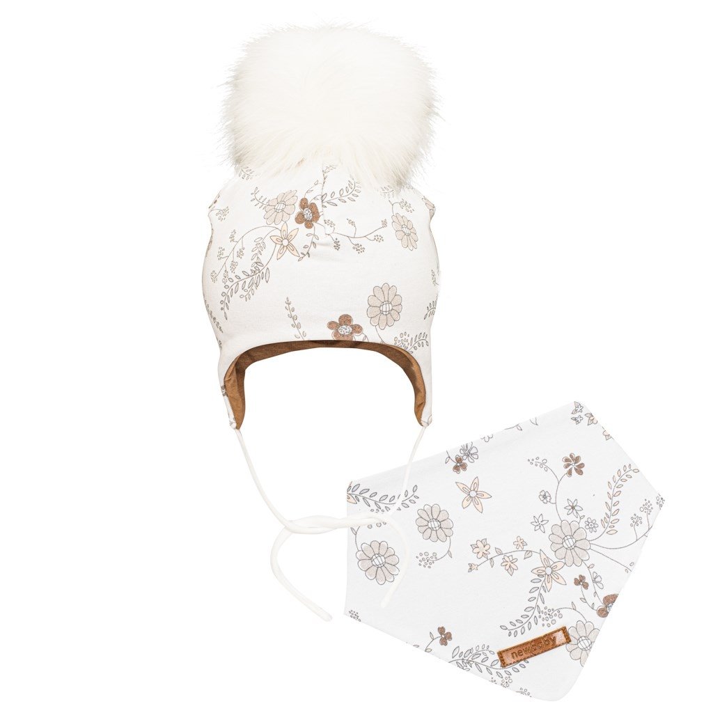Jesenná 2-dielna súprava New Baby Special One. Set sa skladá z čiapočky a šatky na krk. Čiapočka s podšívkou je krásne tvarovaná na ušká, zaväzuje sa na šnúrky a dobre drží na hlavičke bábätka. Je zdobená krásnym brmbolcom a celý set je vyrobený z príjemnej na dotyk látky, ktorá je potlačená kvietkami. Šatku na krk je možné zapnúť do 2 veľkostí. Kvalitný a veľmi praktický doplnok do chladného počasia. Pre New Baby je veľmi dôležitá spokojnosť zákazníka a práve preto vám ponúkame set z kolekcie New Baby Special One. Vrchný materiál: 95% bavlna, 5% elastan. Podšívka: 95% bavlna, 5% elastan. Vhodné na zimu aj jeseň. Veľkosť 86 (12-18m)