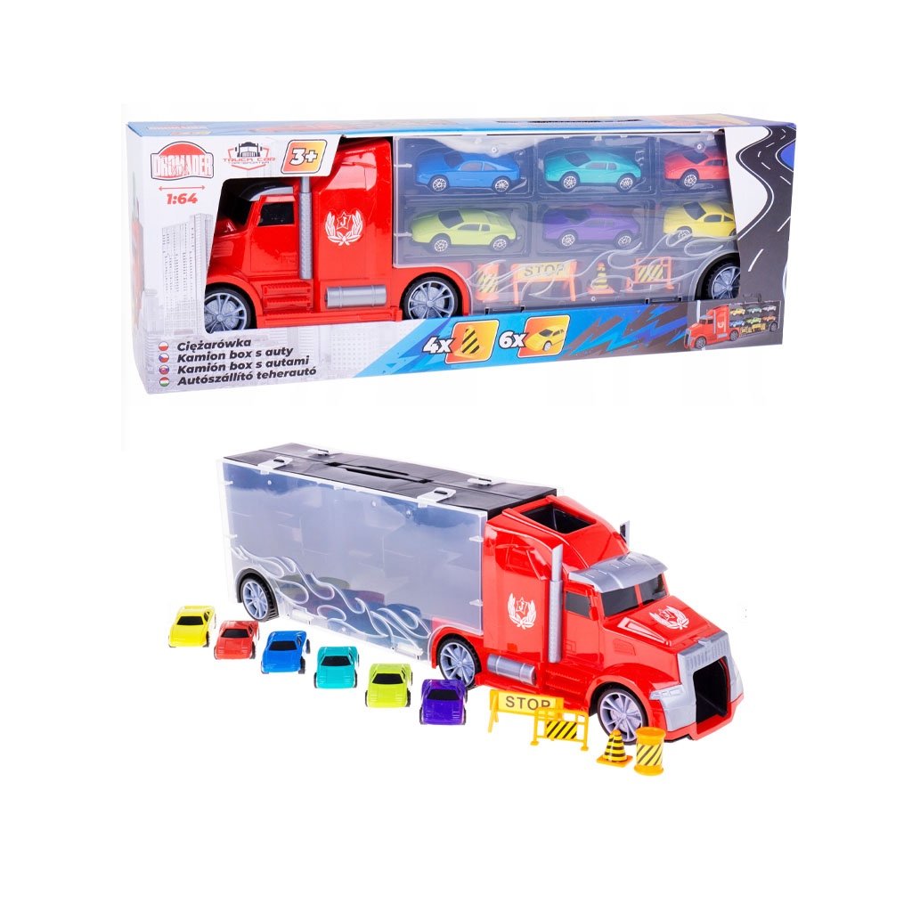 Nákladné auto má 6 pohyblivých kolies, vďaka ktorým sa môže bez problémov pohybovať po plochých povrchoch. Boky na jednej a druhej strane sú otvárateľné a priehľadné, takže po umiestnení autíčok do vozidla budú viditeľné aj po ich zatvorení.