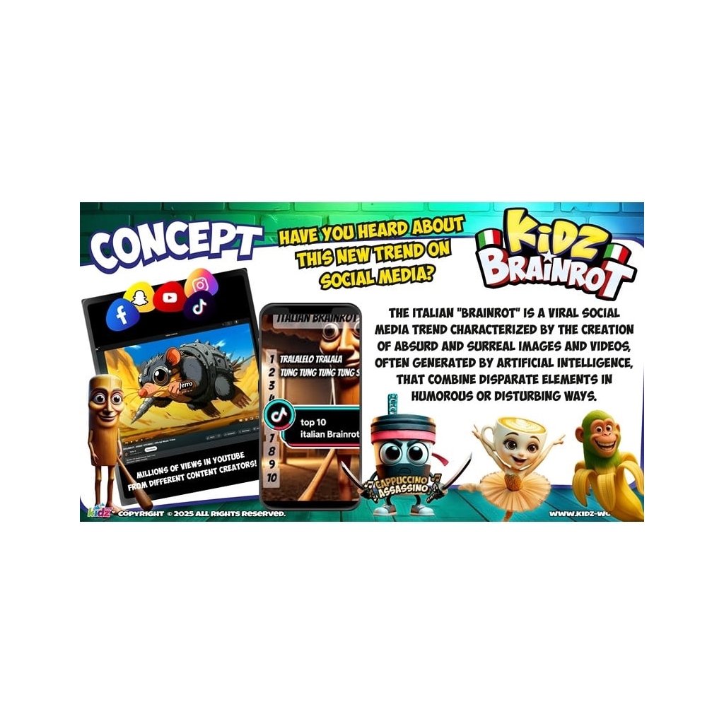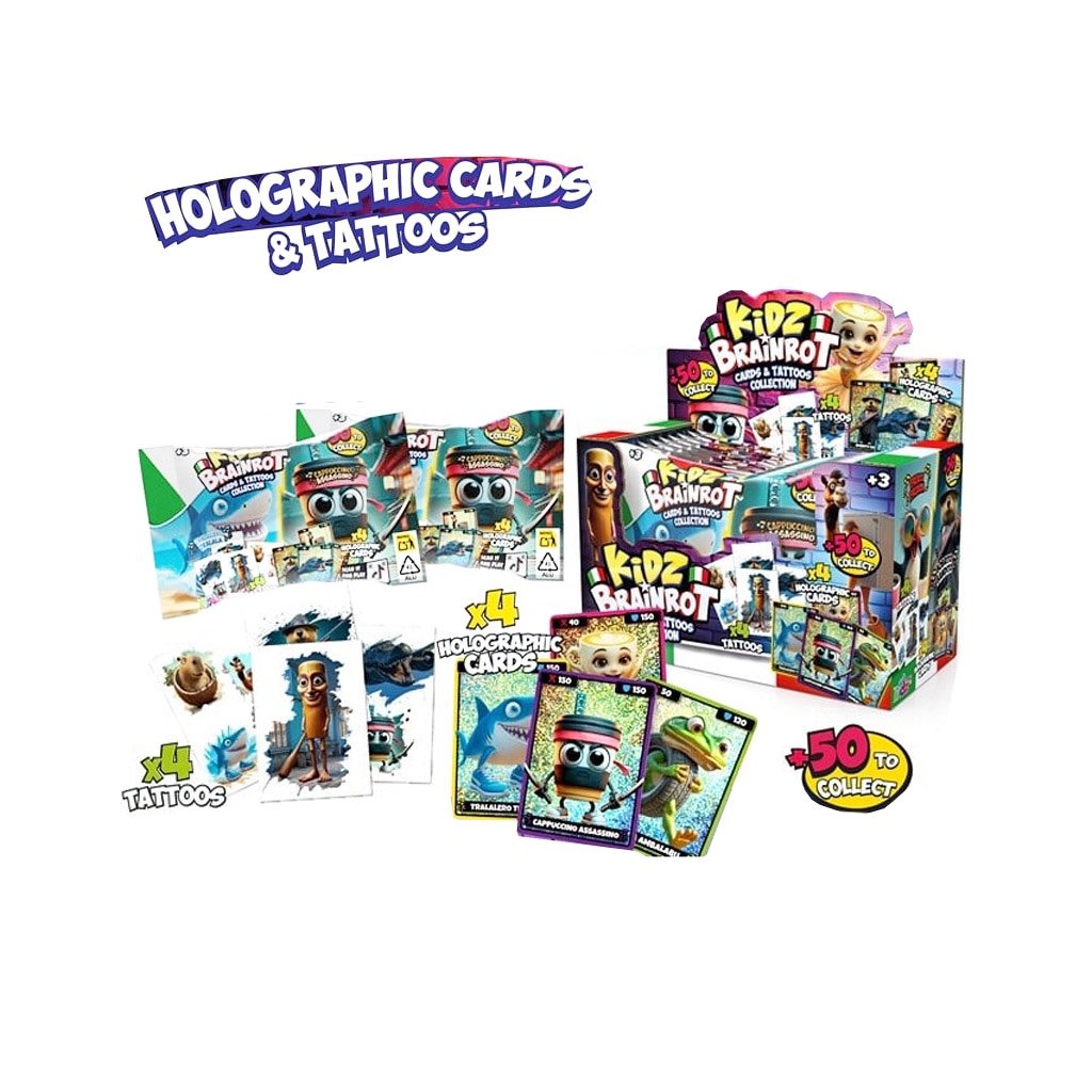 Jedno balenie obsahuje 4ks kartičiek Italian Brainrot náhodný výber a Tetovačky 4ks Italian Brainrot náhodný výber. Cena je za jedno balenie. Rozmer (cm)