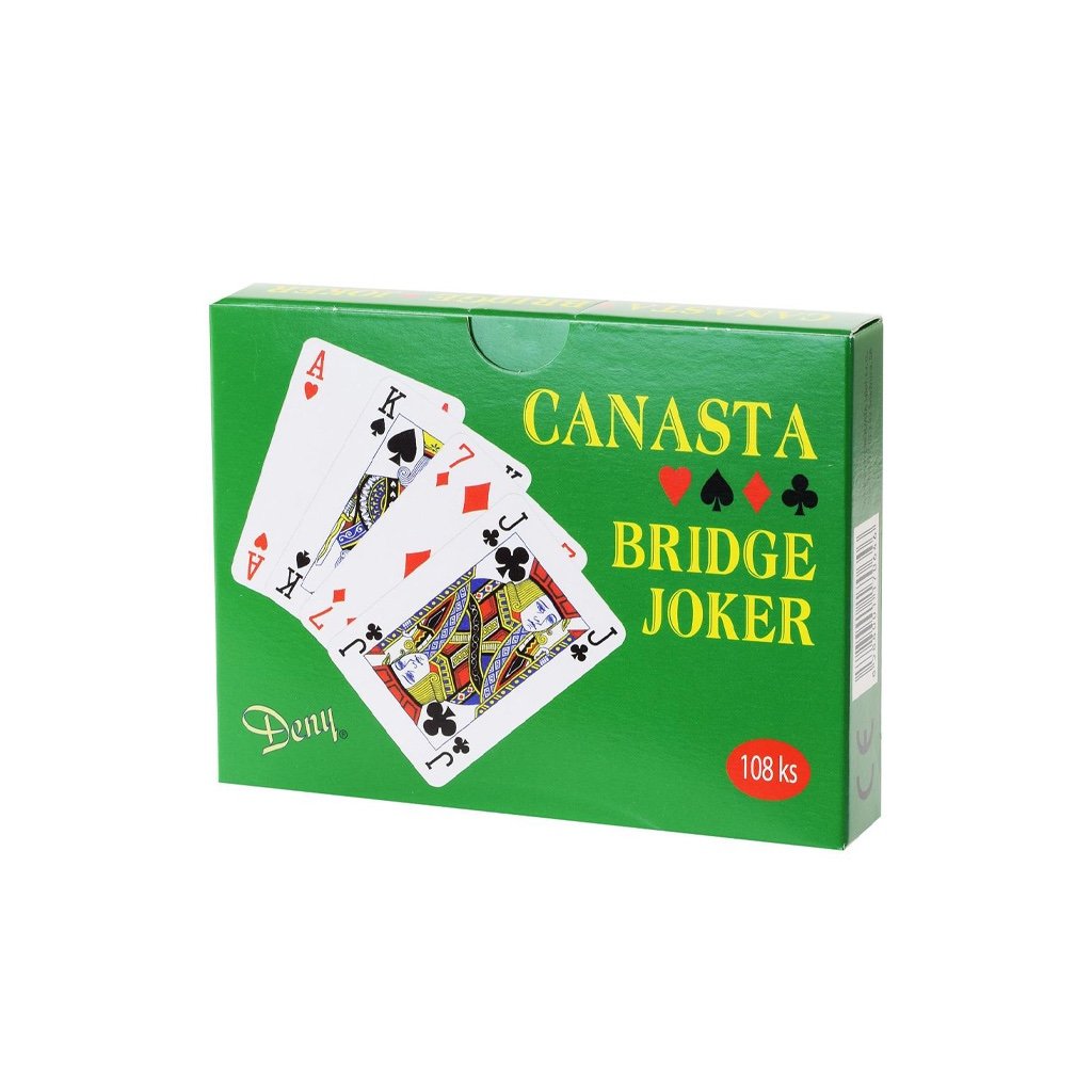 Papierové balenie obsahuje 108 kariet na hru Canasta, Bridge a Joker a priložený návod....