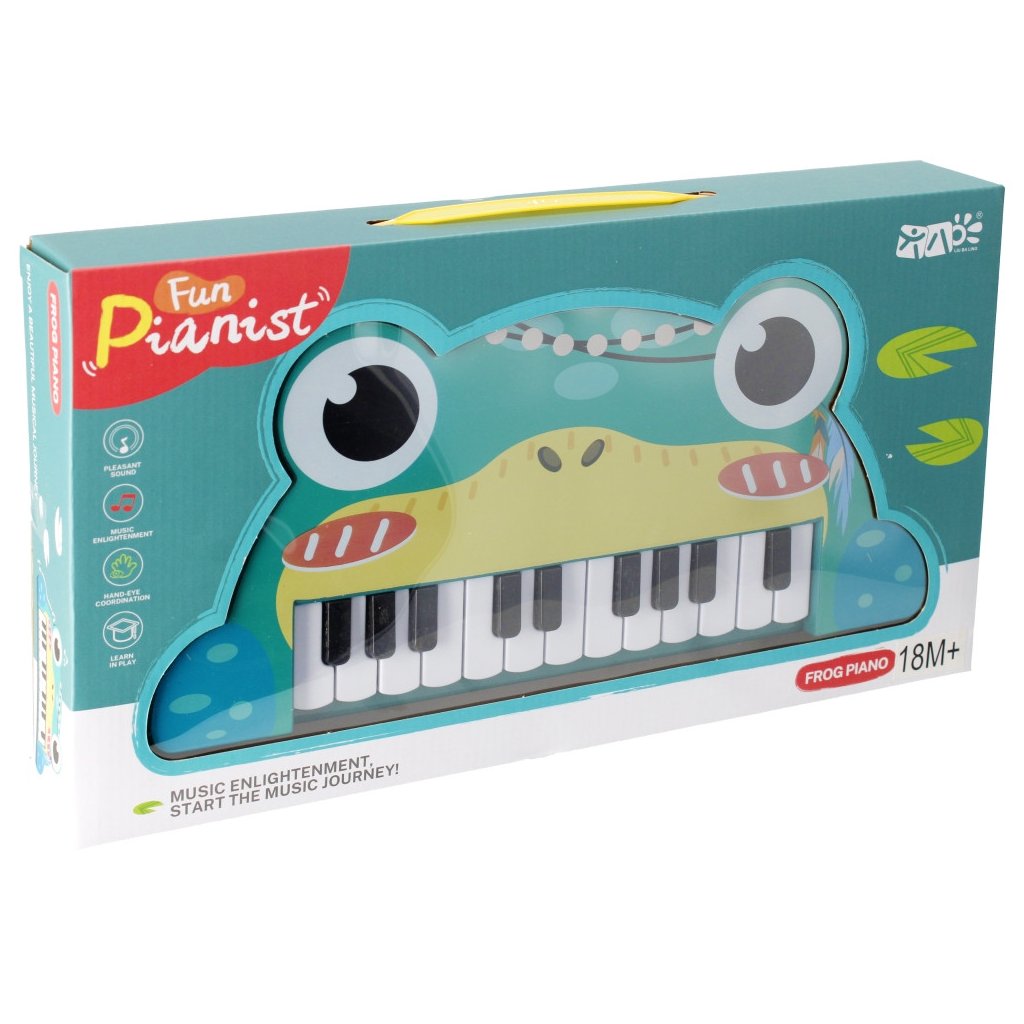 Klavír žabka, rozmery produktu sú 28x3x13cm. Vyžaduje 2 x AALR06 1,5V batérie - nie sú súčasťou sady. Hračka je určená pre deti vo veku 3+. ...