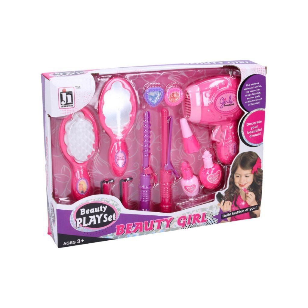 Kozmetický set obsahuje 12 doplnkov pre deti, ktoré sa rady hrajú na skrášľovanie a úpravu vzhľadu. V balení sa nachádza fén, zrkadlo, hrebeň, kulma, natáčky, prstene, rúž a parfumy, ...
