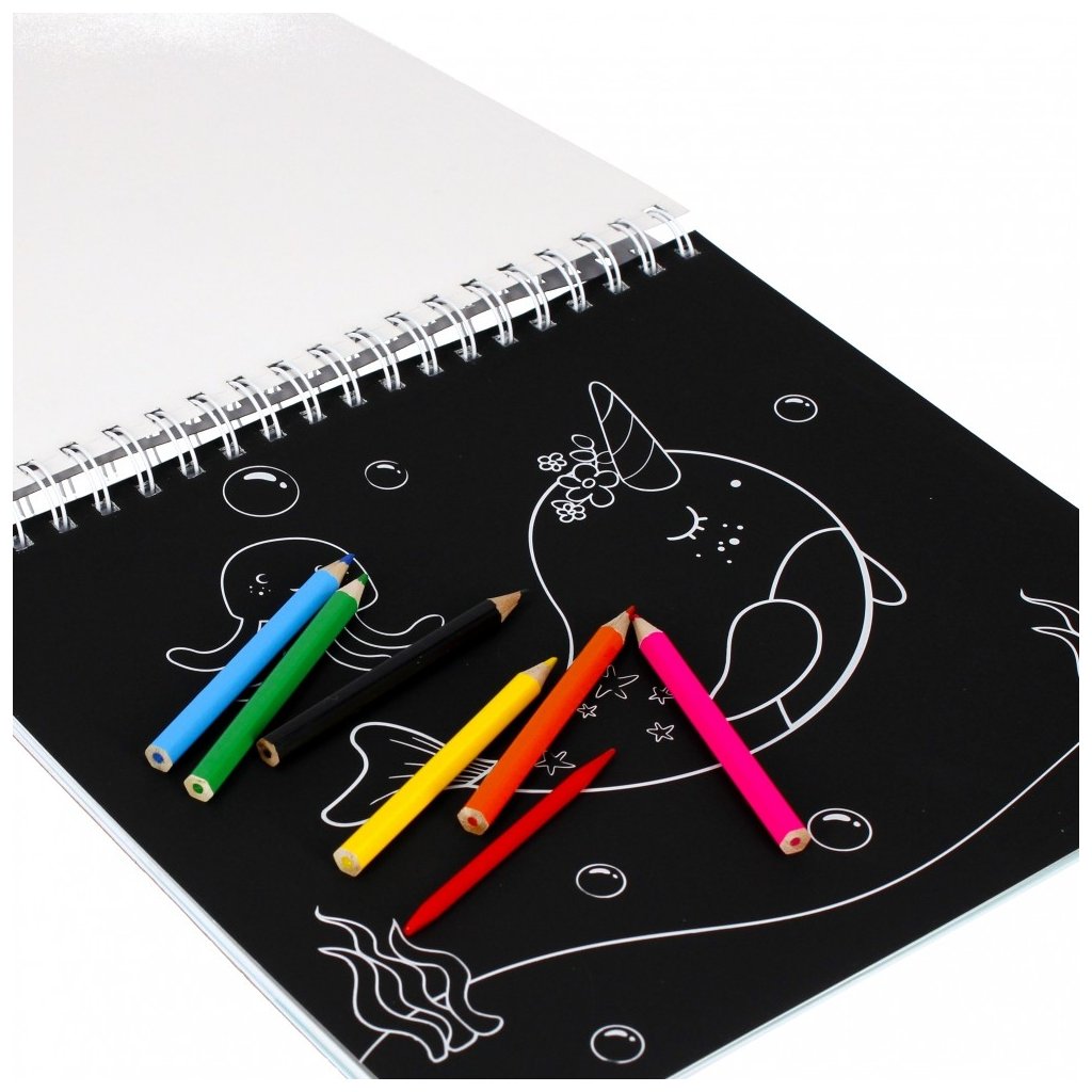 Sada sa skladá zo špirálového zápisníka so šablónami s obrysmi na škrabanie a farbenie, šiestich pasteliek, zmesi farieb a škrabadla. Produkt je určený pre deti vo veku 3+. Rozmery sú ...