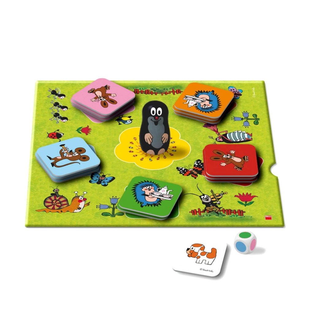 Moja prvá hra je jednoduchá a zábavná rodinná stolová hra s motívom Krtka, v ktorej pomáhate Krtko nájsť jeho kamarátov na lúke. Hra obsahuje herný plán, 15 pevných kartičiek s úlohami, drevenú figúrku Krtka, farebnú kocku a návod, takže si deti užijú interaktívnu zábavu. Je určená pre 2-3 hráčov, trvá cca 15 minút a učia deti rozpoznávať farby, zvuky zvierat a jednoduché pohybové úlohy pri spoločnom hraní s rodičmi či staršími súrodencami. Rozmer (cm)