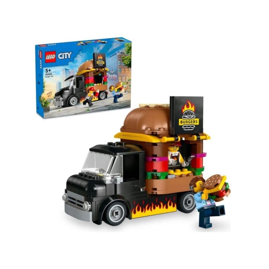 Táto stavebnica LEGO City Burger Truck 60404 pre deti vo veku 5 rokov a viac podnieti ich fantáziu. Pojazdné auto s rýchlym občerstvením s obrovským burgerom na streche sa od auta oddelí. Sada obsahuje aj detailnú kuchyňu, ingrediencie a okno, ktoré sa otvorí a odhalí ceduľu s grilovaným burgerom. Túto 194-dielnu sadu dopĺňajú minifigúrky predavača a zákazníka s načúvacím prístrojom.