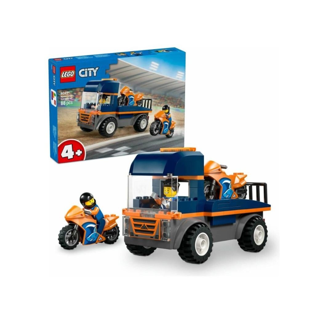 Vydaj sa s deťmi do sveta kreatívneho hrania s LEGO® City Prepravníkom motocyklov 60491! Táto 88-dielna hračka obsahuje nákladné auto s plošinou, z hrubými pneumatikami, 2 športové motorky...