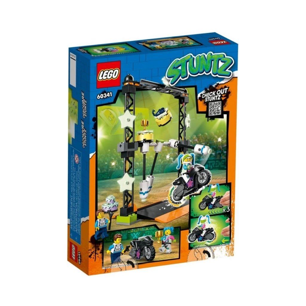 Súťaživé deti si určite zamilujú stavebnicu LEGO® City Kladivová kaskadérska výzva 60341 s prvkami, ktoré svietia v tme. Deti môžu vyštartovať na motorke so zotrvačníkom a zasiahnuť stĺp, aby získali cenu. A vďaka 2 obľúbeným postavičkám zo seriálu LEGO City Adventures je všetko pripravené na vymýšľanie zábavných scénok. Po spojení s inými setmi zo série LEGO City Stuntz navyše zažijete ešte viac kaskadérskej akcie.