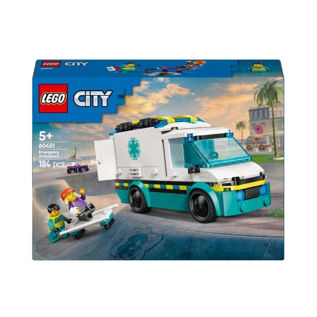 Deti sa môžu s touto stavebnicou LEGO City Ambulance 60451 vydať na vzrušujúce záchranné misie. Deti môžu sklopiť bočné panely a otvoriť zadné dvere, aby mali ľahký prístup k nosidlám a zdravotníckemu vybaveniu vrátane injekčnej striekačky, obväzu a lekárskej tašky. Súprava obsahuje aj skateboard a rampu, ako aj minifigúrky skateboardistu a záchranára na hranie rolí a rozprávanie príbehov.