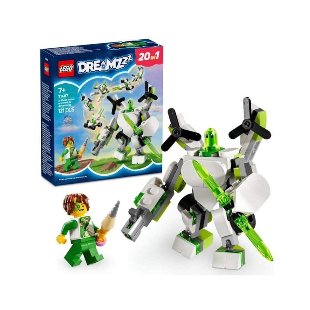Naštartujte fantáziu detí s touto 121-dielnou stavebnicou LEGO® DREAMZzz™ Z-Blobove dobrodružstvá s robotmi a vozidlami 71487, ktorá deťom ponúka 20 úžasných spôsobov stavania parádnych robotov a vozidiel.