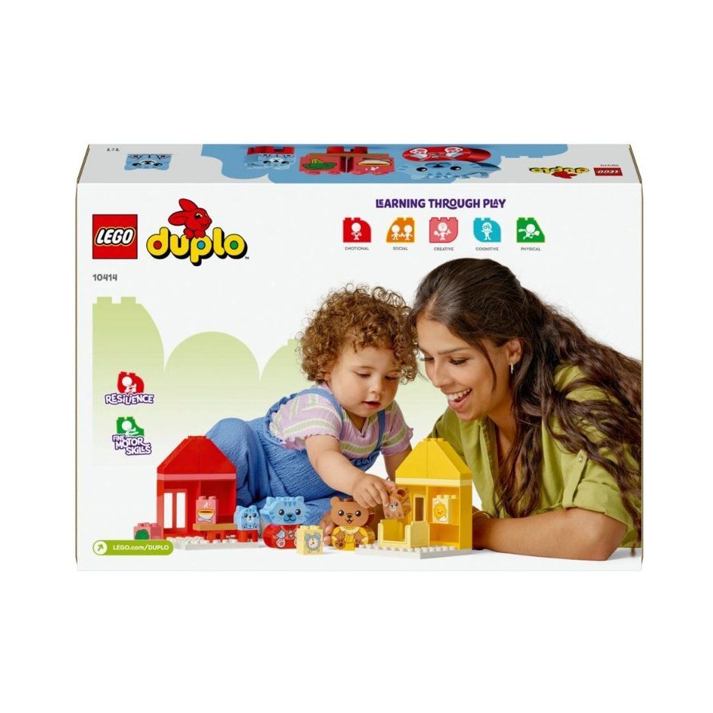 Pomôžte najmenším deťom preskúmať svoje pocity so stavebnicou LEGO® DUPLO® Moje prvé každodenné aktivity: Jedenie a čas na spanie 10414. Táto zábavná a praktická hračka pre deti predškolského veku od 18 mesiacov obsahuje 4 hračkárske zvieratká, do ktorých sa deti môžu ľahko vžiť.