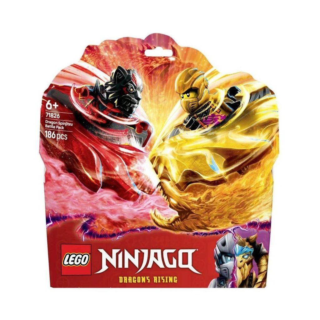 Stavebnica LEGO® NINJAGO® Bojový balíček dračieho Spinjitzu 71826 prinesie deťom napínavé súboje plné rýchlosti a dračej energie. Set obsahuje 4 minifigúrky nindžov so zbraňami, 2 ...