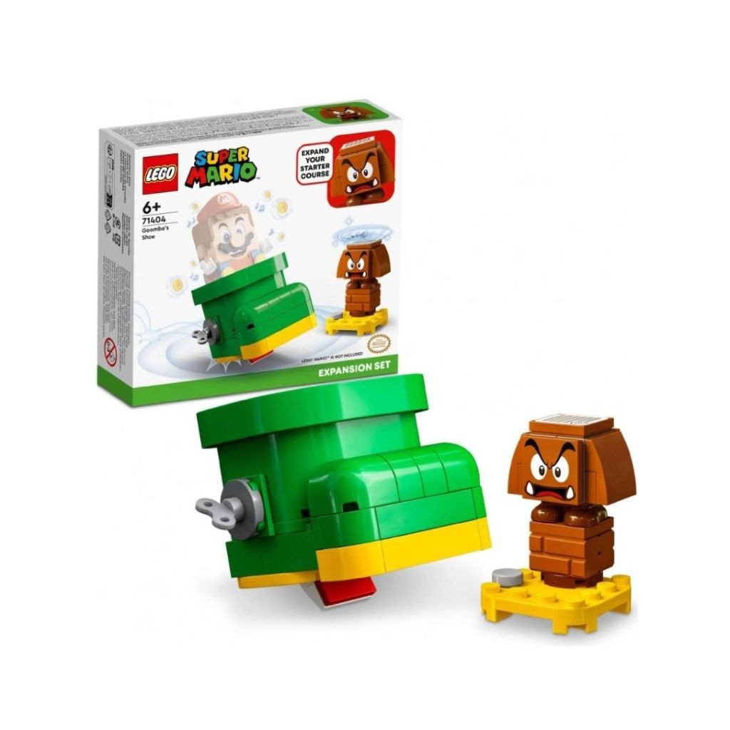 Prežívajte zábavné dobrodružstvá vo svete LEGO® Super Mario™ s rozširujúcim setom Goombova topánka 71404. Tento 76-dielny set obsahuje zostaviteľnú verziu Goombovej topánky z kociek a figúrku LEGO Goombu, ktorú deti môžu využiť vo svojich herných leveloch. Zmocnite sa topánky s LEGO® Mariom, LEGO® Luigim alebo LEGO® Peach figúrky nie sú súčasťou balenia a získavajte digitálne mince za skákanie a predvádzanie trikov vo vzduchu. Pre plnohodnotný interaktívny herný zážitok sa vyžaduje štartovací set 71360, 71387 alebo 71403. Rozmer (cm)