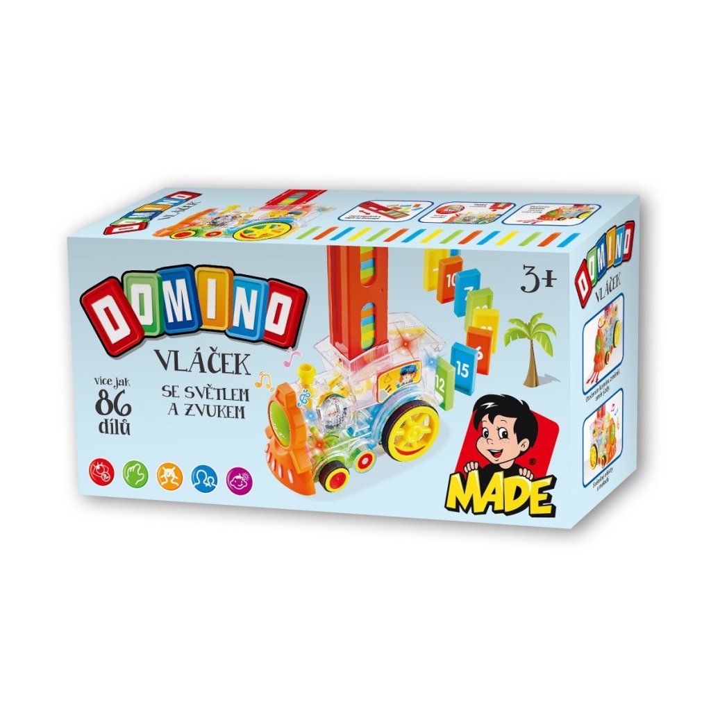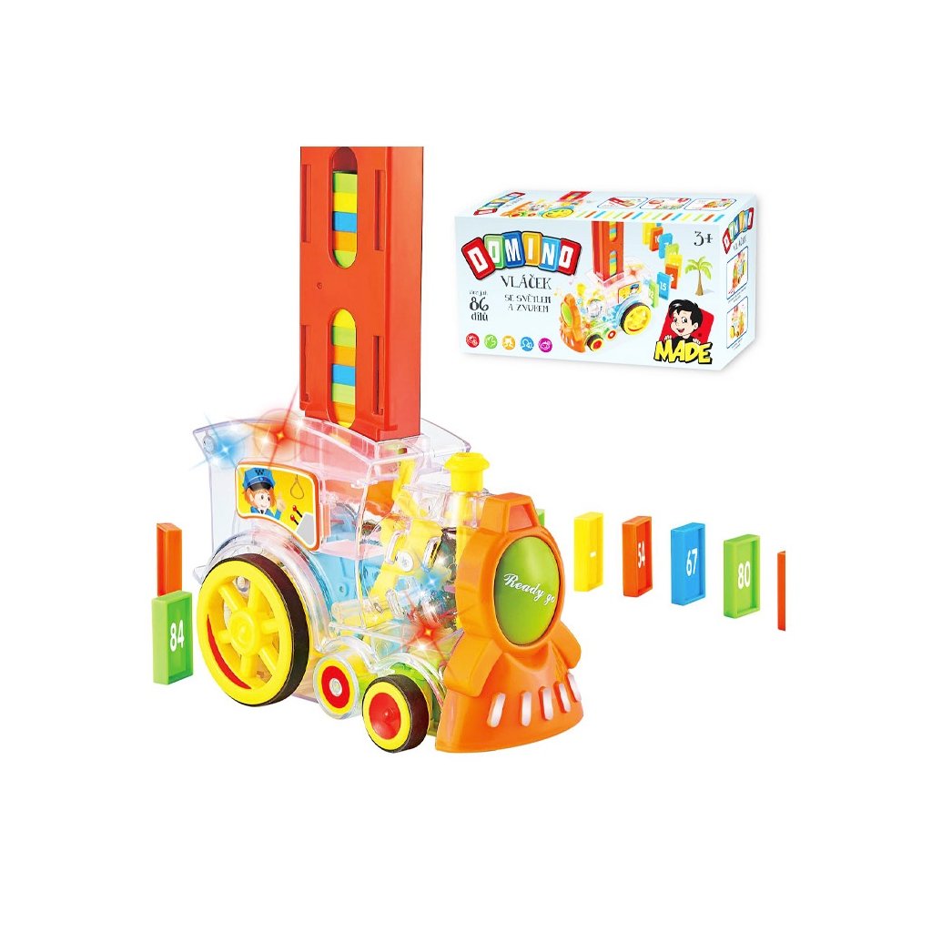 Lokomotíva domino 86 ks, so svetlom, na batérie, 15 x 7,5 x 11 cm