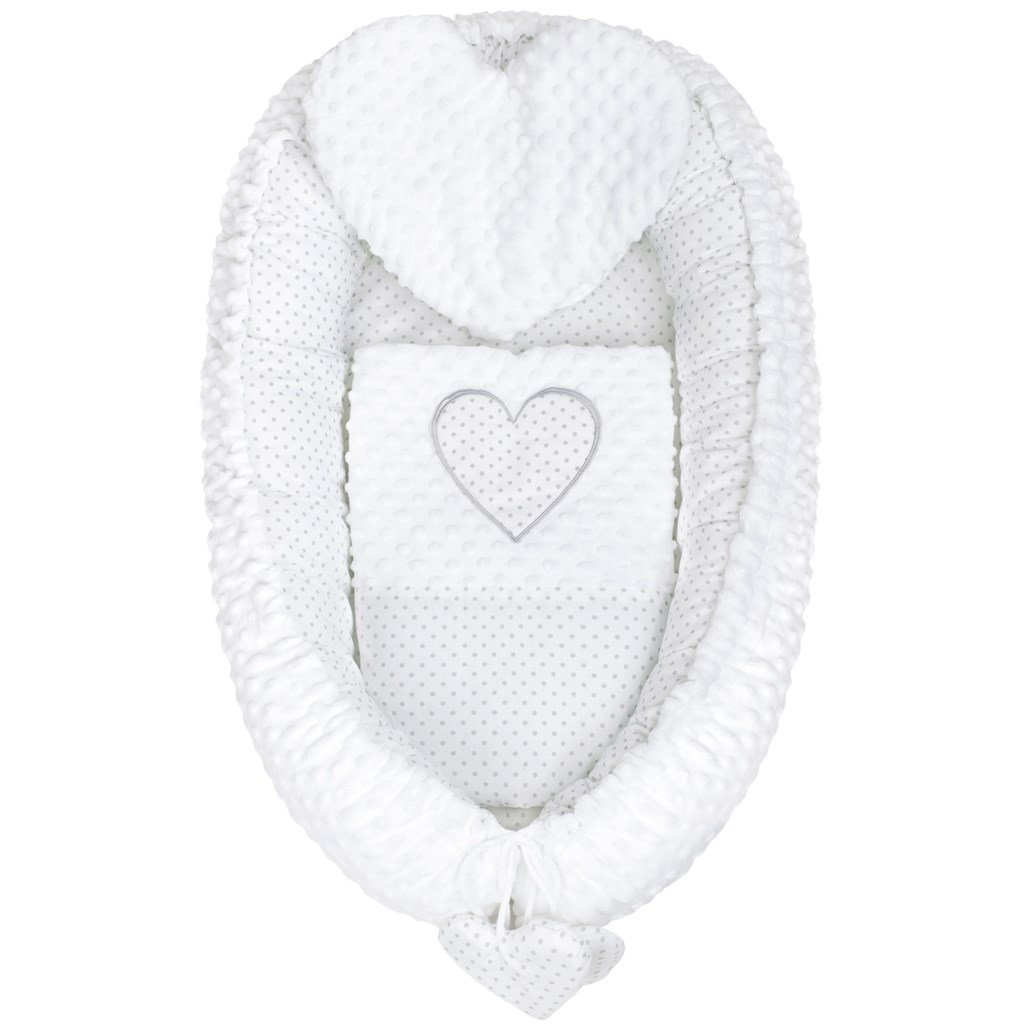 Luxusné hniezdočko s vankúšikom a perinkou New Baby z Minky Srdiečko biele