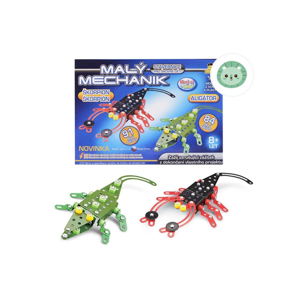 Stavebnica s kovových a plastových častí, s možnosťou zložiť škorpióna a aligátora. Škorpión 91 dielov, aligátor 84 dielov. Vhodné pre deti od 8 rokov....
